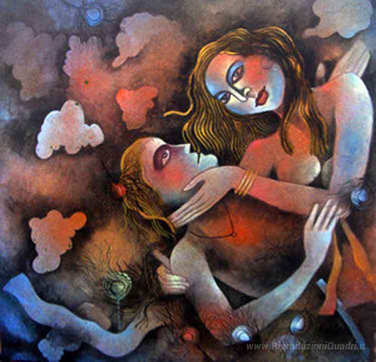 Ti offriamo una riproduzione artigianale su tela dell'opera famosa 'Eternal Love IV' di Jahar Dasgupta, dal Museo delle Riproduzioni.