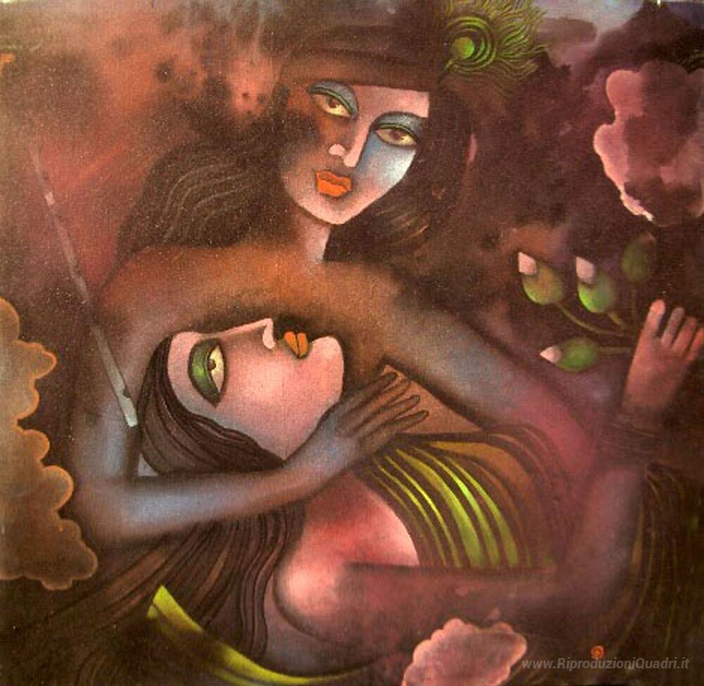 Ti offriamo una riproduzione artigianale su tela dell'opera famosa 'Eternal Love V' di Jahar Dasgupta, dal Museo delle Riproduzioni.