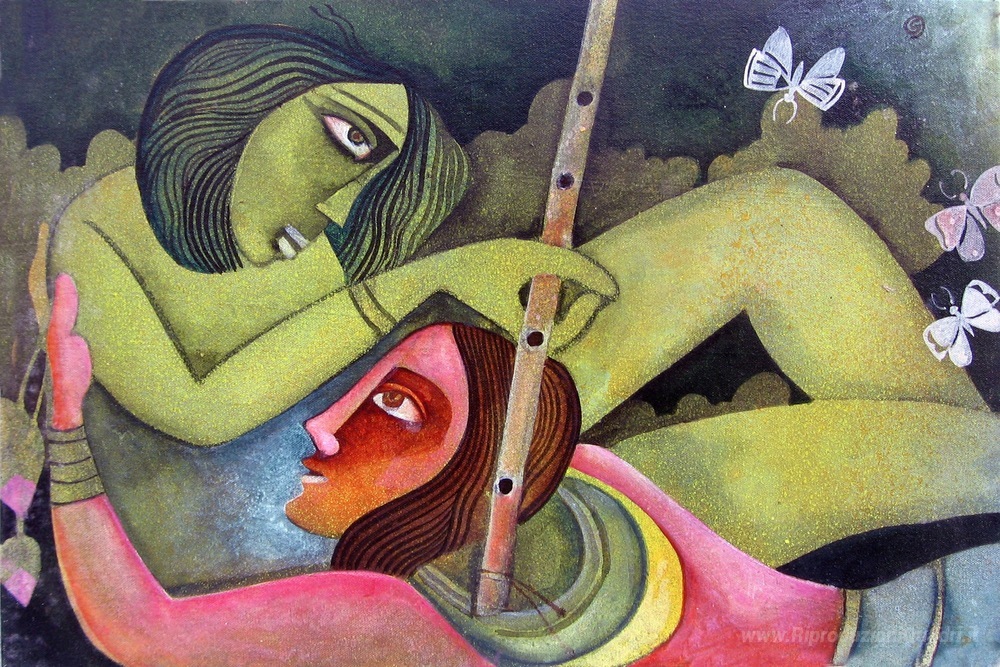 Ti offriamo una riproduzione artigianale su tela dell'opera famosa 'Eternal Love VIII' di Jahar Dasgupta, dal Museo delle Riproduzioni.