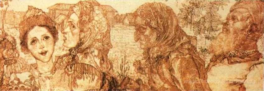 Ti offriamo una riproduzione artigianale su tela dell'opera famosa 'Famiglia contadina' di Pavel Filonov, dal Museo delle Riproduzioni.