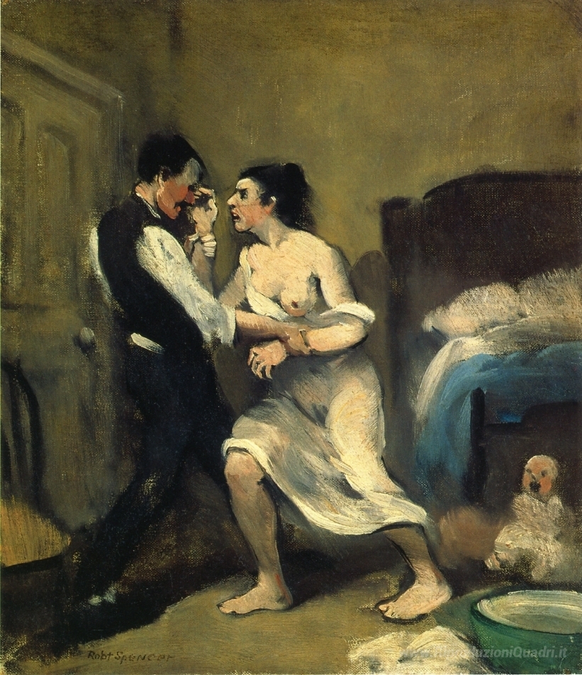 Ti offriamo una riproduzione artigianale su tela dell'opera famosa 'Famiglia felice' di Robert Spencer, dal Museo delle Riproduzioni.