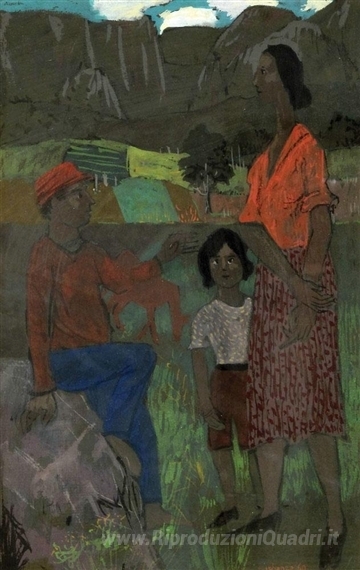 Ti offriamo una riproduzione artigianale su tela dell'opera famosa 'Famiglia' di Grégoire Michonze, dal Museo delle Riproduzioni.