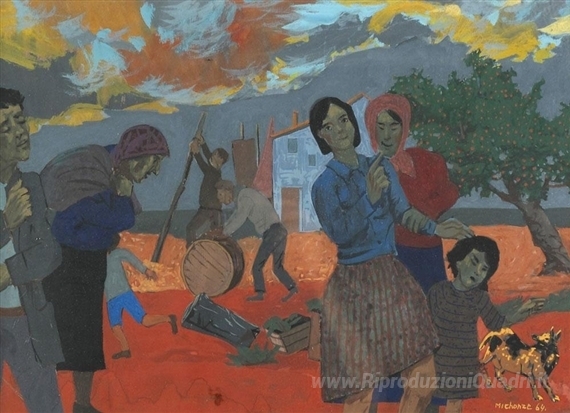 Ti offriamo una riproduzione artigianale su tela dell'opera famosa 'Famiglia' di Grégoire Michonze, dal Museo delle Riproduzioni.