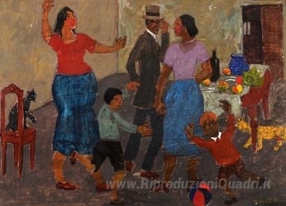 Ti offriamo una riproduzione artigianale su tela dell'opera famosa 'Famiglia' di Grégoire Michonze, dal Museo delle Riproduzioni.