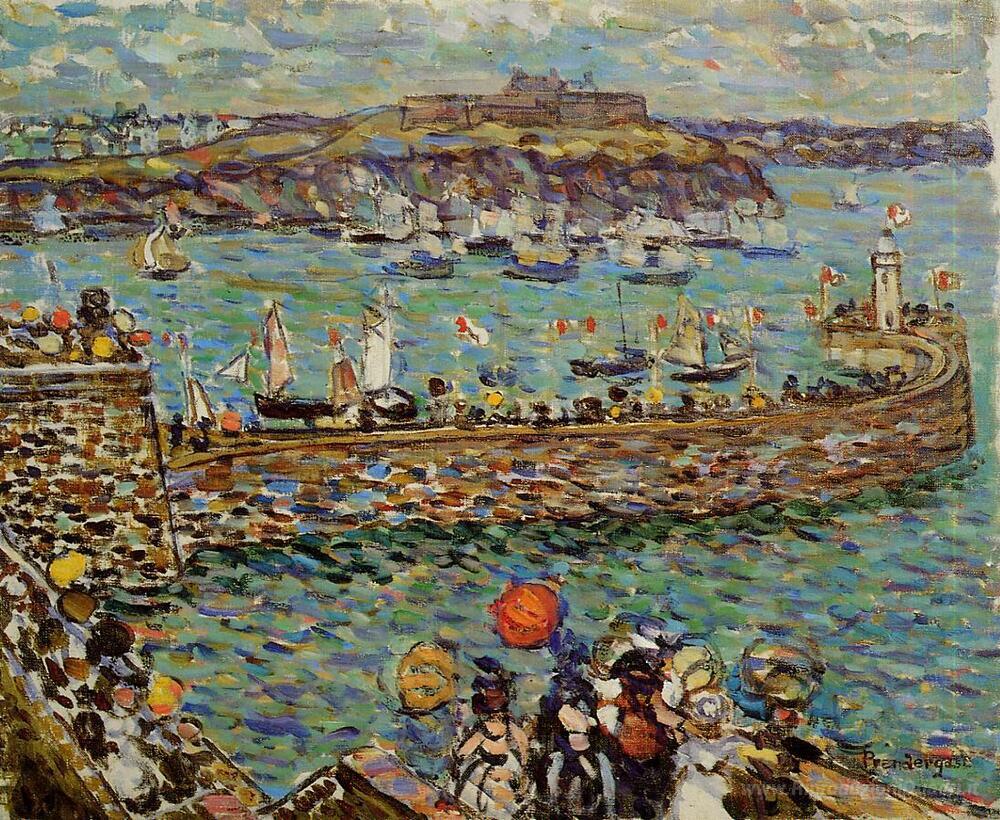 Ti offriamo una riproduzione artigianale su tela dell'opera famosa 'Faro a St. Malo' di Maurice Prendergast, dal Museo delle Riproduzioni.
