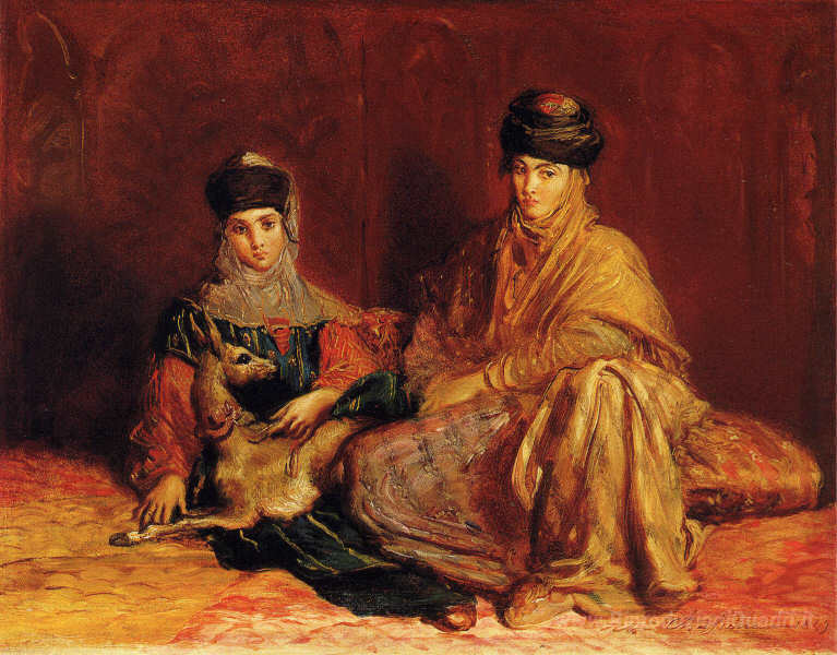 Ti offriamo una riproduzione artigianale su tela dell'opera famosa 'Femme et fillette de Constantine avec une gazzella' di Theodore Chasseriau, dal Museo delle Riproduzioni.