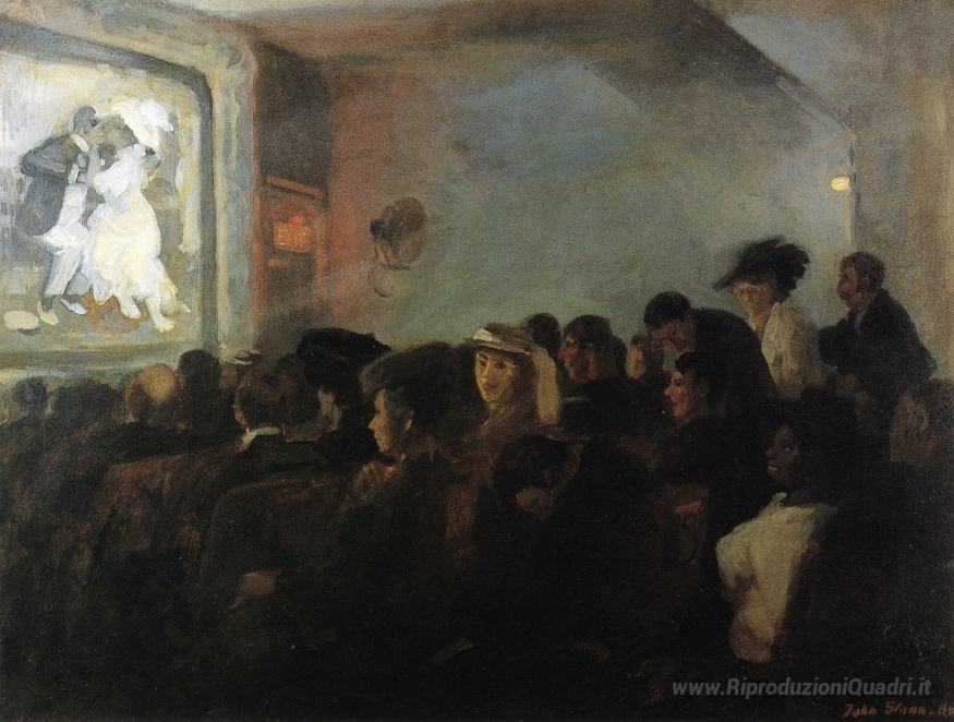 Ti offriamo una riproduzione artigianale su tela dell'opera famosa 'Film, cinque centesimi' di John French Sloan, dal Museo delle Riproduzioni.