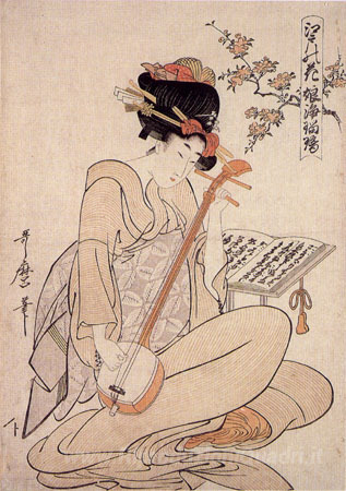 Ti offriamo una riproduzione artigianale su tela dell'opera famosa 'Fiori Di Edo' di Kitagawa Utamaro, dal Museo delle Riproduzioni.