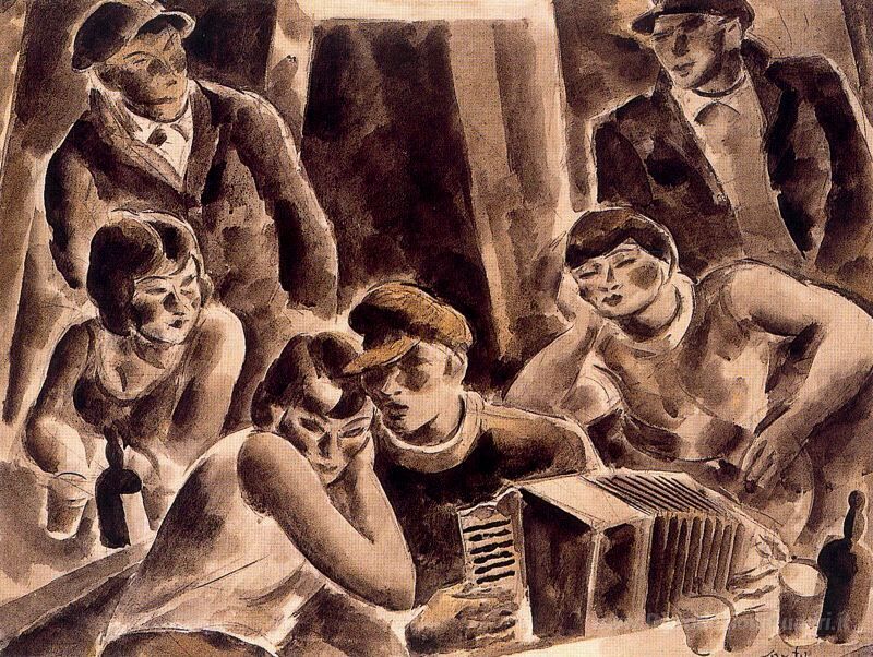 Ti offriamo una riproduzione artigianale su tela dell'opera famosa 'Fisarmonicista' di Arturo Souto, dal Museo delle Riproduzioni.