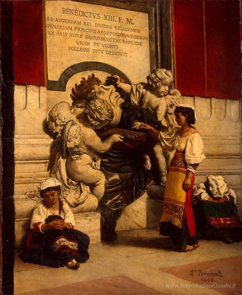 Il talento di Leon Bonnat si esprime attraverso una tecnica impeccabile e uno stile che unisce realismo e impressionismo. Ogni pennellata comunica una profondità emotiva, mentre la scelta dei colori vivaci conferisce vitalità e movimento alla scena. Questa opera non solo esalta la bellezza architettonica della Basilica, ma porta anche un pizzico di storia e cultura italiana nel vostro ambiente, rendendo ogni stanza un luogo di ispirazione e contemplazione.