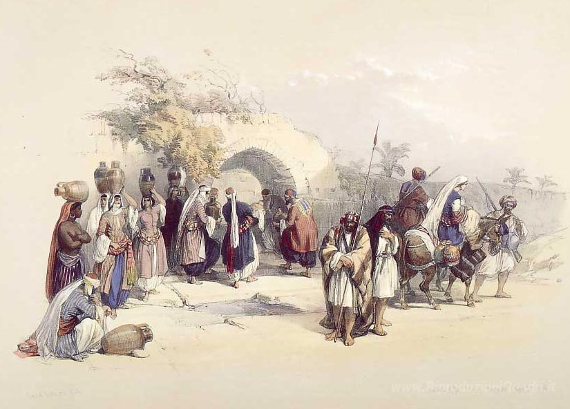 Ti offriamo una riproduzione artigianale su tela dell'opera famosa 'Fontana della Vergine, Nazareth' di David Roberts, dal Museo delle Riproduzioni.
