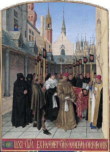 Ti offriamo una riproduzione artigianale su tela dell'opera famosa 'Funerali' di Jean Fouquet, dal Museo delle Riproduzioni.