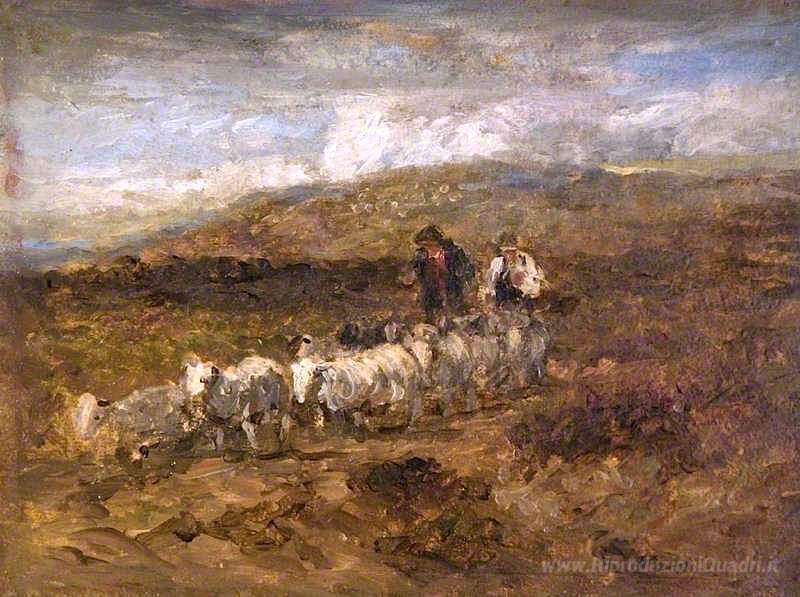 Ti offriamo una riproduzione artigianale su tela dell'opera famosa 'Gallese Pastori' di David Cox, dal Museo delle Riproduzioni.