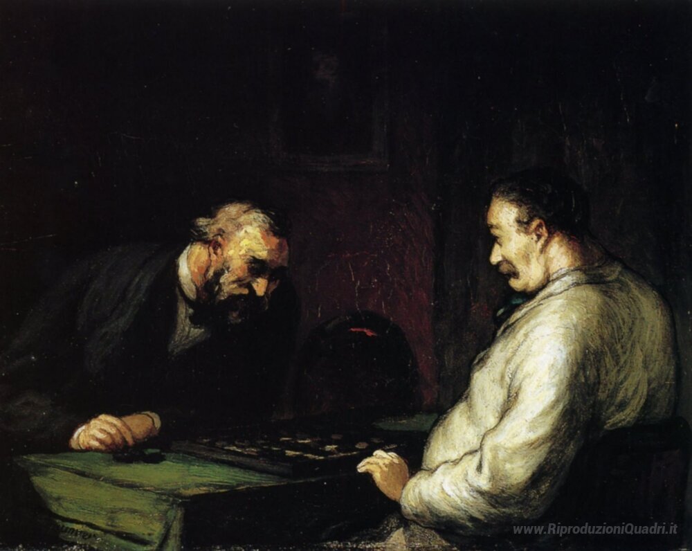 Ti offriamo una riproduzione artigianale su tela dell'opera famosa 'Giocatori' di Honore Daumier, dal Museo delle Riproduzioni.