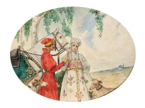 Ti offriamo una riproduzione artigianale su tela dell'opera famosa 'Giovani innamorati' di Sergey Solomko, dal Museo delle Riproduzioni.