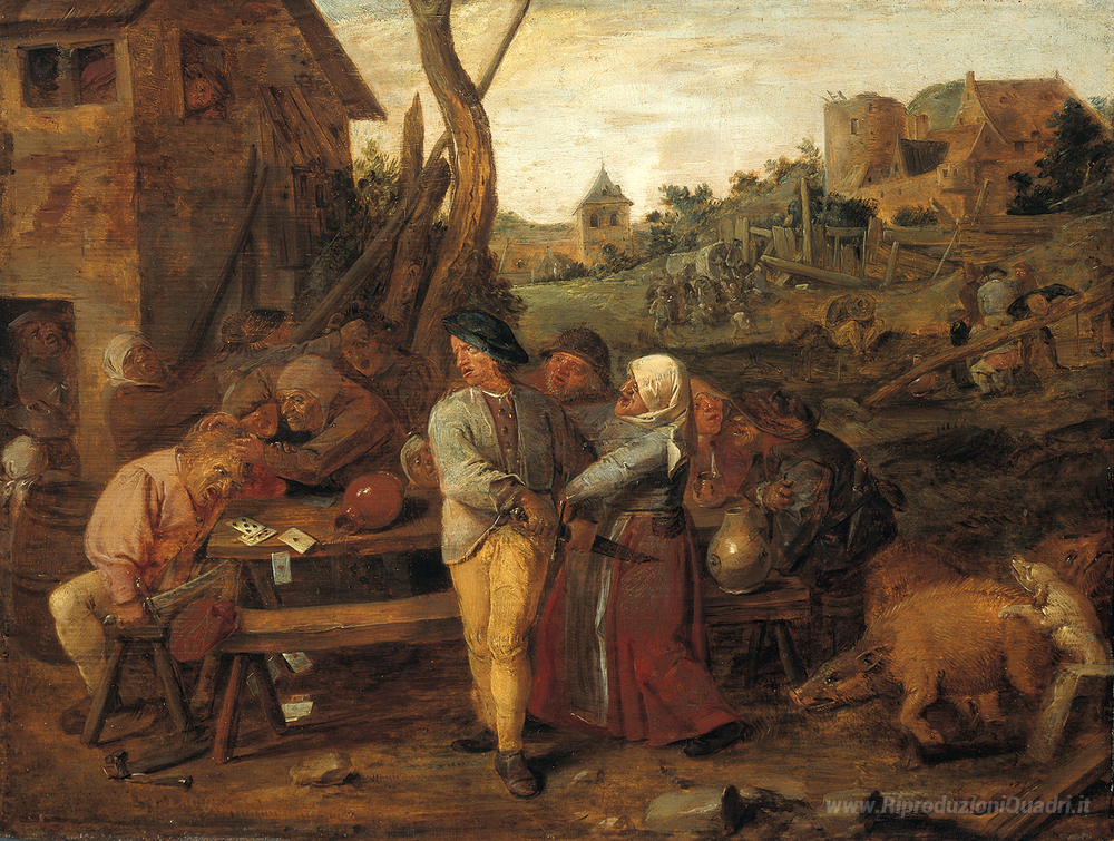 Ti offriamo una riproduzione artigianale su tela dell'opera famosa 'Gli agricoltori Lotta Partito' di Adriaen Brouwer, dal Museo delle Riproduzioni.