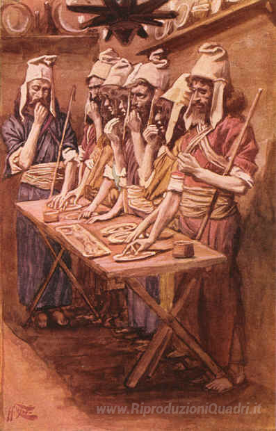 Ti offriamo una riproduzione artigianale su tela dell'opera famosa 'Gli ebrei Pasqua' di James Tissot, dal Museo delle Riproduzioni.