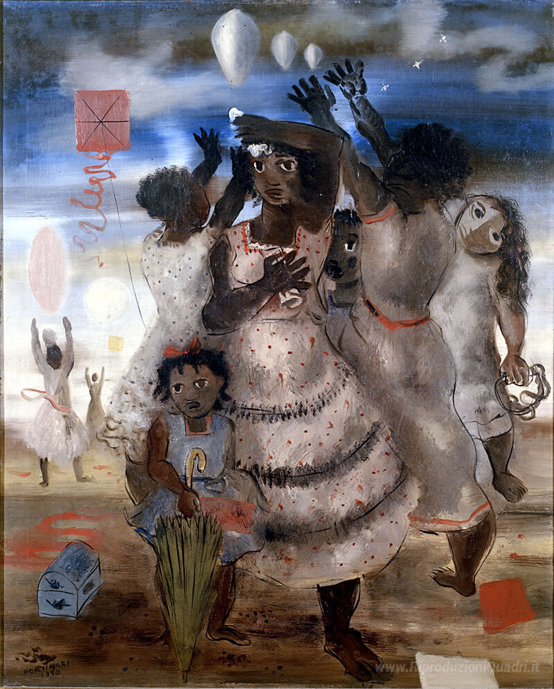 Ti offriamo una riproduzione artigianale su tela dell'opera famosa 'Grupo de Meninas brincando' di Candido Portinari, dal Museo delle Riproduzioni.