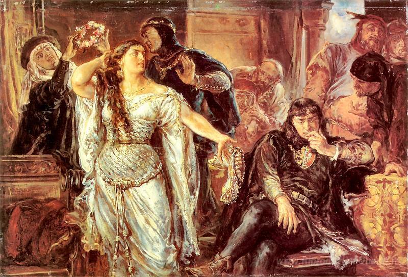 Ti offriamo una riproduzione artigianale su tela dell'opera famosa 'Gryfino e Leszek' di Jan Matejko, dal Museo delle Riproduzioni.