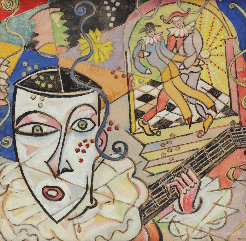 Ti offriamo una riproduzione artigianale su tela dell'opera famosa 'Harlequins' di Corneliu Michailescu, dal Museo delle Riproduzioni.