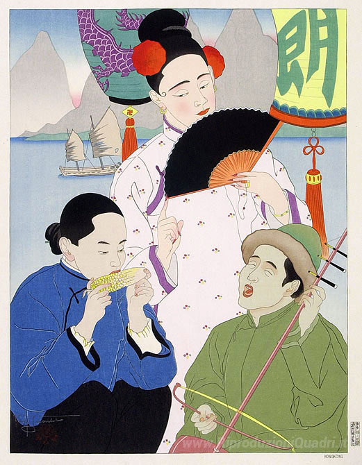 Ti offriamo una riproduzione artigianale su tela dell'opera famosa 'Hong Kong' di Paul Jacoulet, dal Museo delle Riproduzioni.