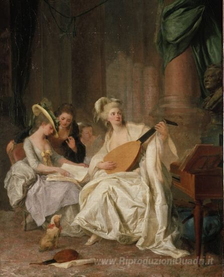 Ti offriamo una riproduzione artigianale su tela dell'opera famosa 'Huldigung un Gluck' di Johann Anton de Peters, dal Museo delle Riproduzioni.
