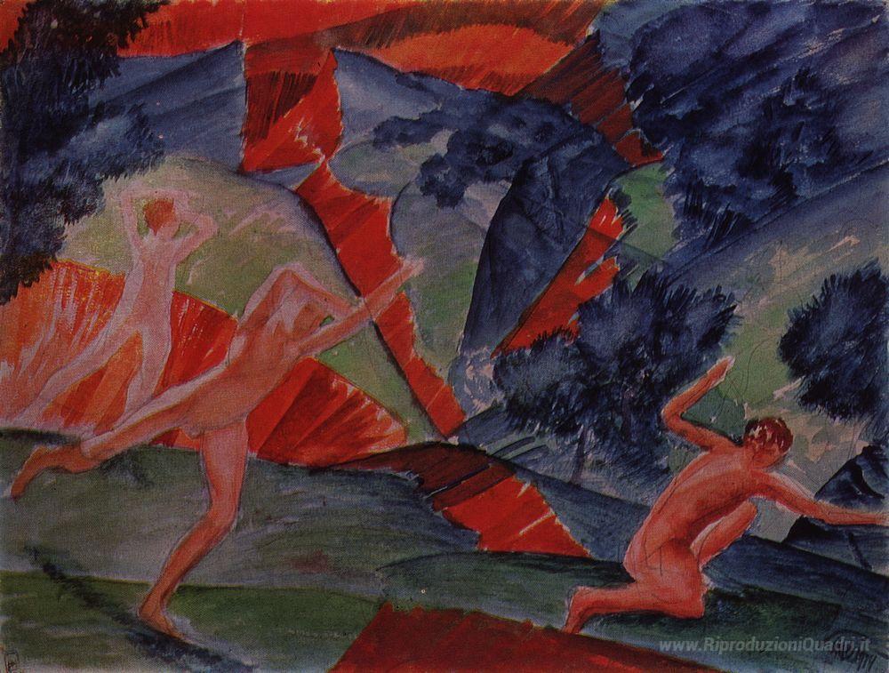 Ti offriamo una riproduzione artigianale su tela dell'opera famosa 'Hurricane' di Kuzma Petrov-Vodkin, dal Museo delle Riproduzioni.