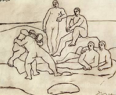 Ti offriamo una riproduzione artigianale su tela dell'opera famosa 'I combattenti' di Pablo Picasso, dal Museo delle Riproduzioni.