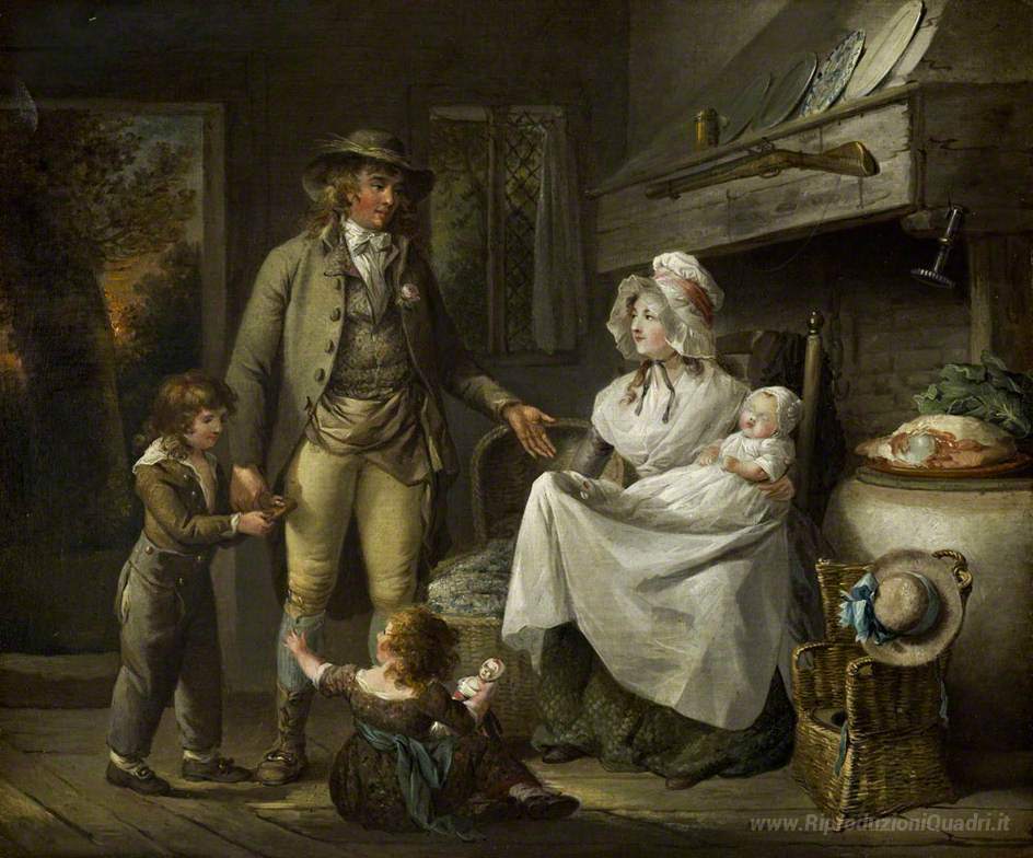 Ti offriamo una riproduzione artigianale su tela dell'opera famosa 'I comfort di Industria' di George Morland, dal Museo delle Riproduzioni.