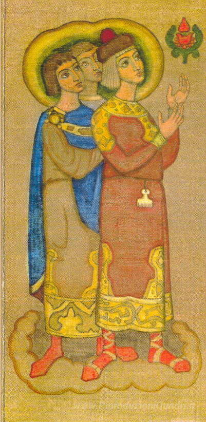 Ti offriamo una riproduzione artigianale su tela dell'opera famosa 'I giovani, successori' di Nicholas Roerich, dal Museo delle Riproduzioni.
