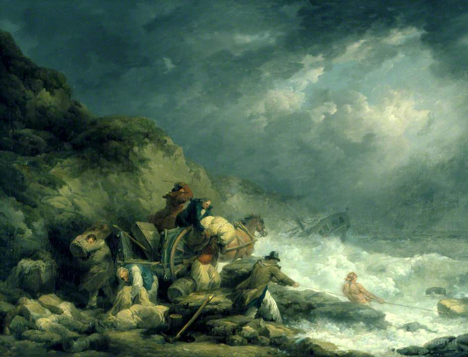 Ti offriamo una riproduzione artigianale su tela dell'opera famosa 'I Wreckers' di George Morland, dal Museo delle Riproduzioni.