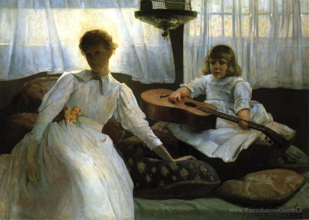 Ti offriamo una riproduzione artigianale su tela dell'opera famosa 'Idle Hours' di Julian Alden Weir, dal Museo delle Riproduzioni.