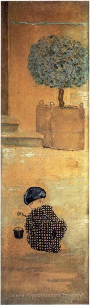 Ti offriamo una riproduzione artigianale su tela dell'opera famosa 'Il bambino con un castello di sabbia, o il bambino con un secchi' di Pierre Bonnard, dal Museo delle Riproduzioni.