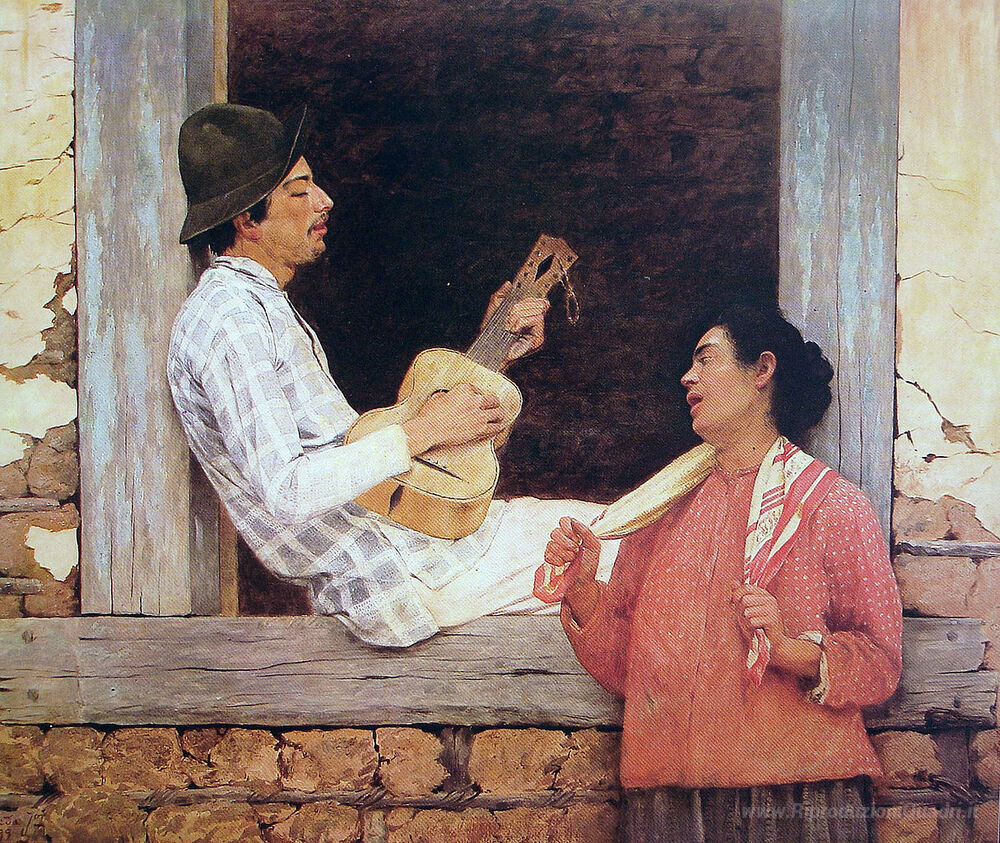 Ti offriamo una riproduzione artigianale su tela dell'opera famosa 'Il chitarrista' di Jose Ferraz de Almeida Junior, dal Museo delle Riproduzioni.