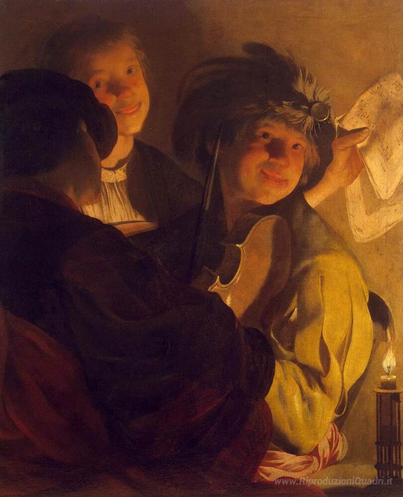 Ti offriamo una riproduzione artigianale su tela dell'opera famosa 'Il concerto' di Hendrick Terbrugghen, dal Museo delle Riproduzioni.