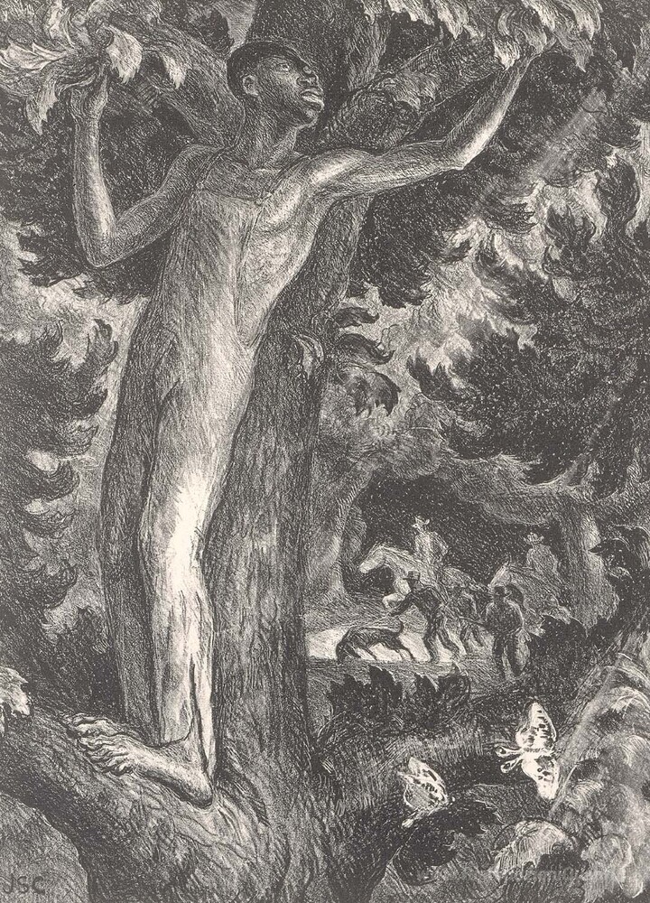 Ti offriamo una riproduzione artigianale su tela dell'opera famosa 'Il fuggitivo' di John Steuart Curry, dal Museo delle Riproduzioni.