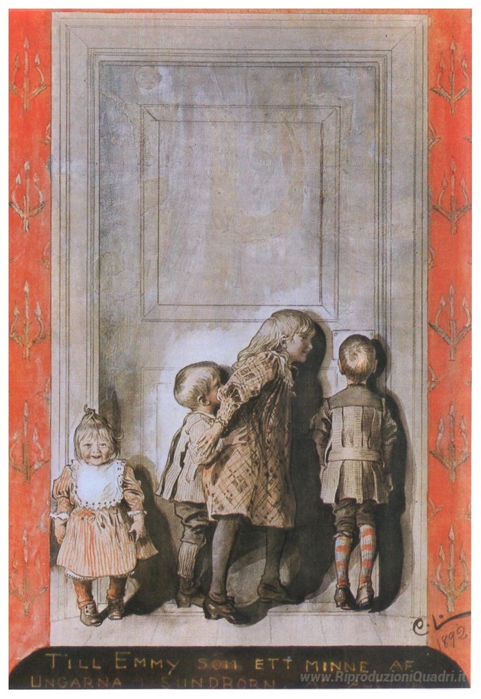 Ti offriamo una riproduzione artigianale su tela dell'opera famosa 'Il giorno prima di Natale' di Carl Larsson, dal Museo delle Riproduzioni.