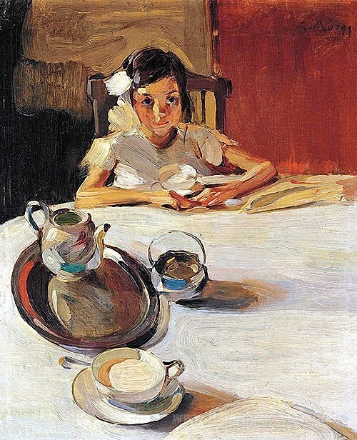 Ti offriamo una riproduzione artigianale su tela dell'opera famosa 'Il latte' di Nikolaos Lytras, dal Museo delle Riproduzioni.