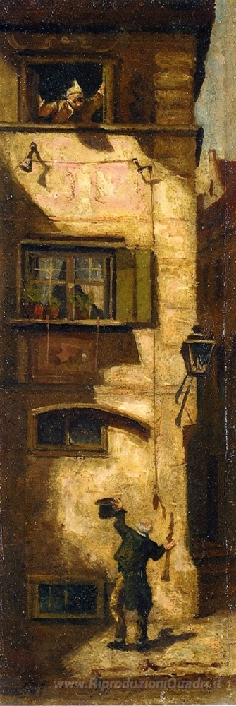 Ti offriamo una riproduzione artigianale su tela dell'opera famosa 'Il Mendicante Musical' di Carl Spitzweg, dal Museo delle Riproduzioni.