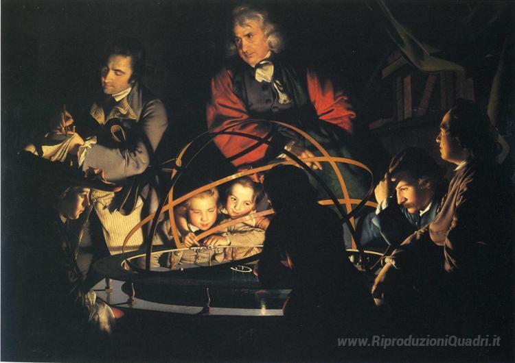 Ti offriamo una riproduzione artigianale su tela dell'opera famosa 'Il Orrery' di Joseph Wright, dal Museo delle Riproduzioni.