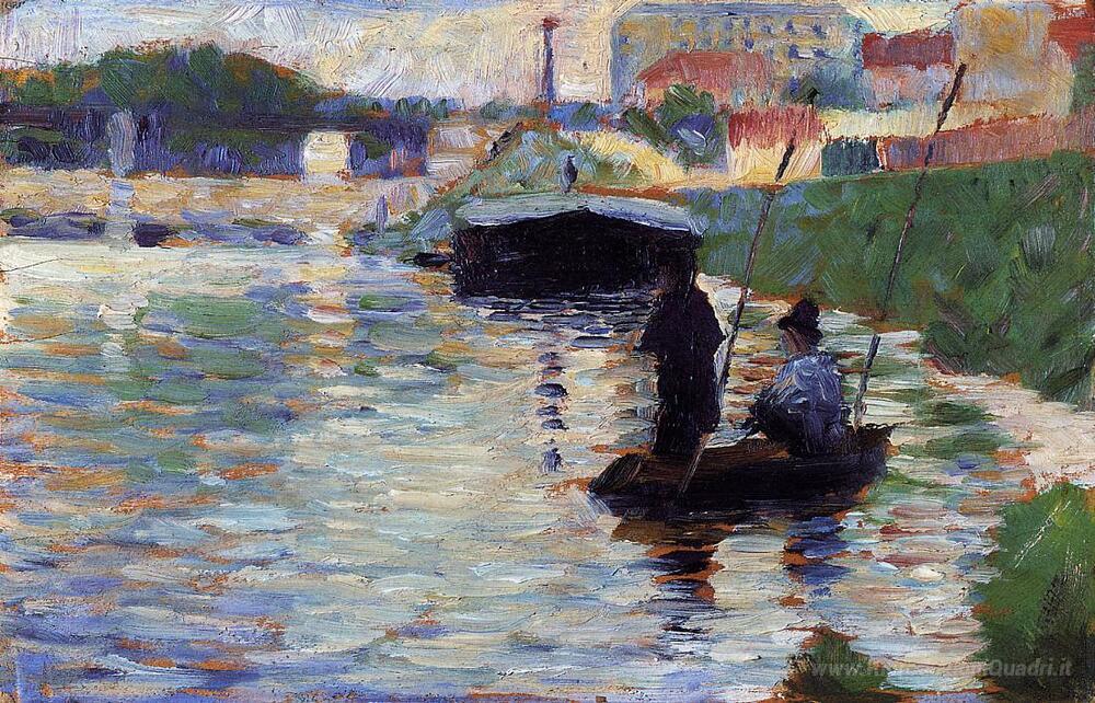 Ti offriamo una riproduzione artigianale su tela dell'opera famosa 'Il Ponte - Vista della Senna' di Georges Seurat, dal Museo delle Riproduzioni.