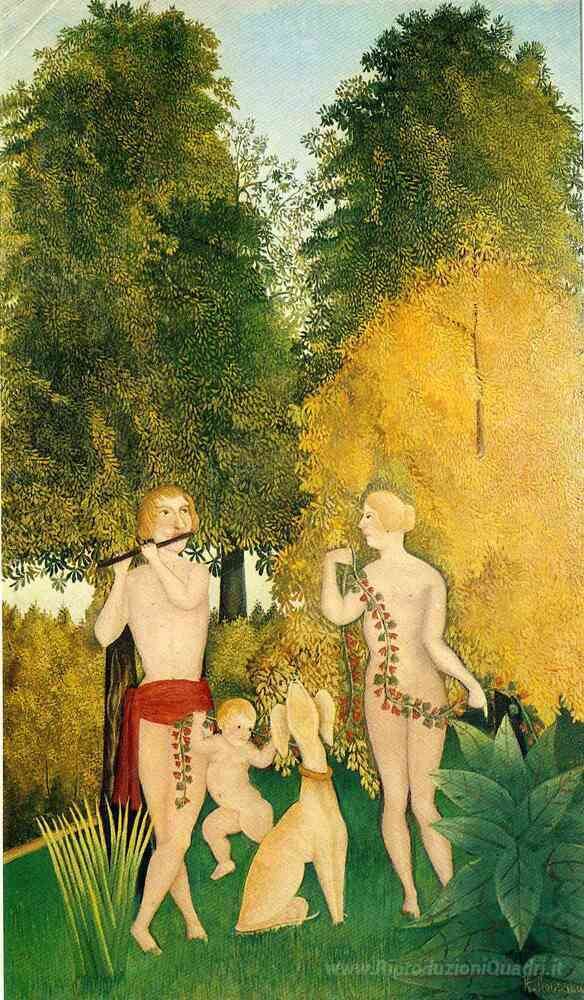 Ti offriamo una riproduzione artigianale su tela dell'opera famosa 'Il Quartetto Felice' di Henri Rousseau, dal Museo delle Riproduzioni.
