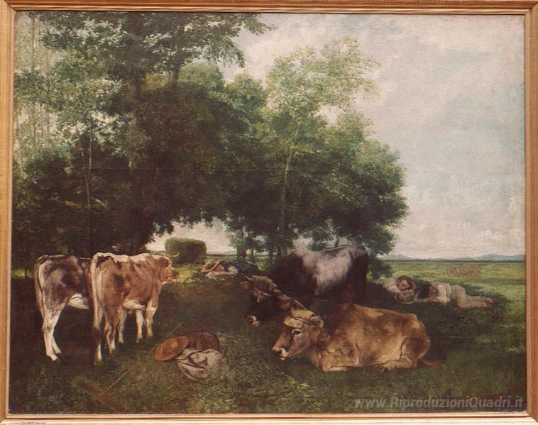 Ti offriamo una riproduzione artigianale su tela dell'opera famosa 'Il riposo durante la stagione della raccolta (Montagne del Doubs' di Gustave Courbet, dal Museo delle Riproduzioni.