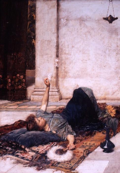 Ti offriamo una riproduzione artigianale su tela dell'opera famosa 'Il ventilatore della piuma bianca' di Frederic Leighton, dal Museo delle Riproduzioni.