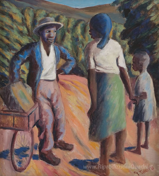 Ti offriamo una riproduzione artigianale su tela dell'opera famosa 'IL VISITATORE EASTWOOD' di Gerard Sekoto, dal Museo delle Riproduzioni.
