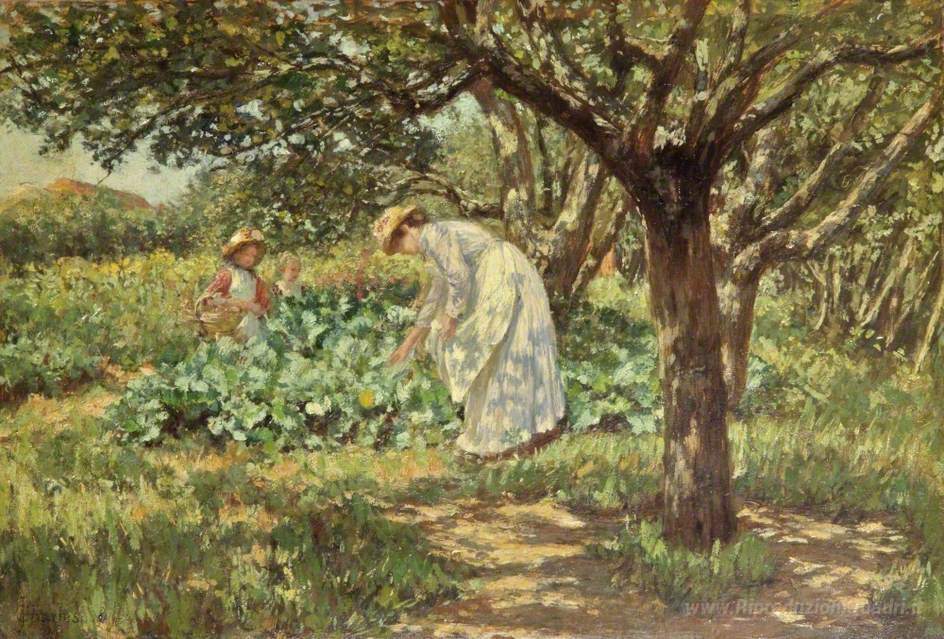Ti offriamo una riproduzione artigianale su tela dell'opera famosa 'In giardino' di James Charles, dal Museo delle Riproduzioni.