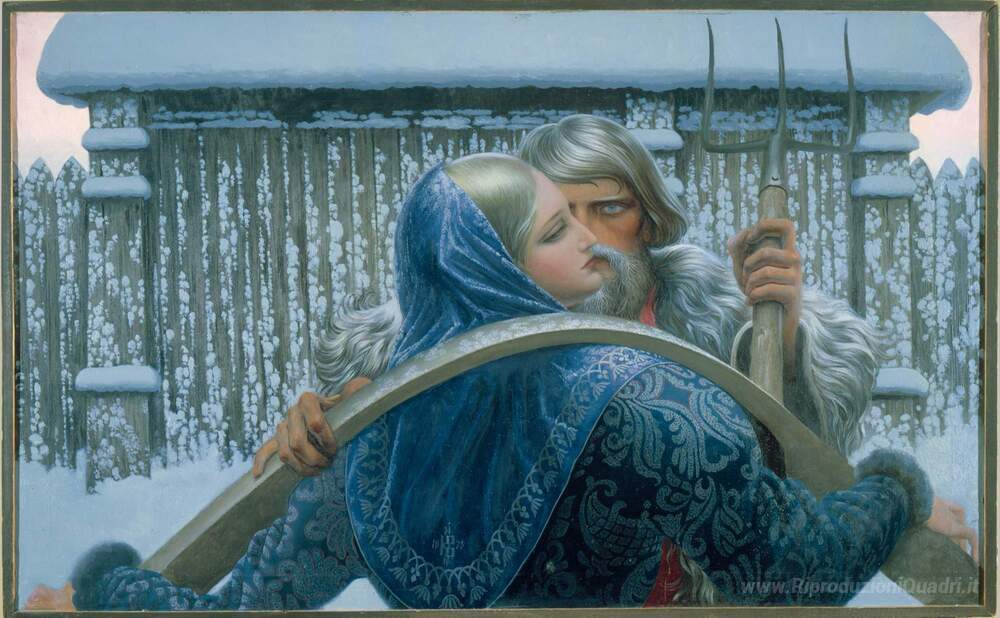 Ti offriamo una riproduzione artigianale su tela dell'opera famosa 'Incontro inaspettato' di Konstantin Vasilyev, dal Museo delle Riproduzioni.