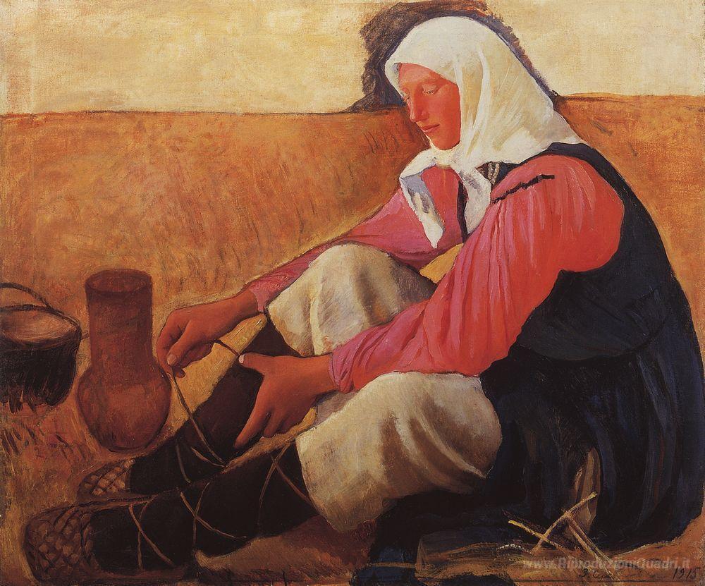 Benvenuti nella nostra selezione esclusiva di dipinti a olio, dove ogni opera racconta una storia unica di passione e creatività. Oggi vi presentiamo Indossare le scarpe contadino, un capolavoro della rinomata artista russa Zinaida Serebriakova, il cui talento ha attraversato le frontiere, incantando il pubblico con la sua visione poetica e vibrante della vita quotidiana. Nata in un contesto artistico privilegiato, Serebriakova ha saputo padroneggiare le tecniche del dipinto a olio, creando opere che esprimono una straordinaria intensità emotiva.