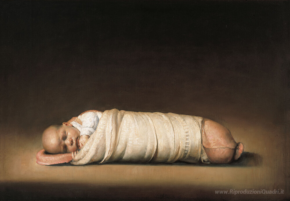 Ti offriamo una riproduzione artigianale su tela dell'opera famosa 'Infantile' di Odd Nerdrum, dal Museo delle Riproduzioni.