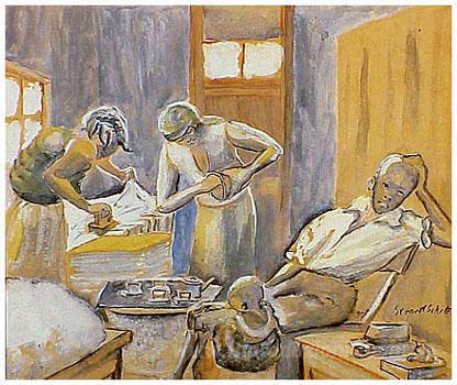 Ti offriamo una riproduzione artigianale su tela dell'opera famosa 'Interior Sophiatown' di Gerard Sekoto, dal Museo delle Riproduzioni.